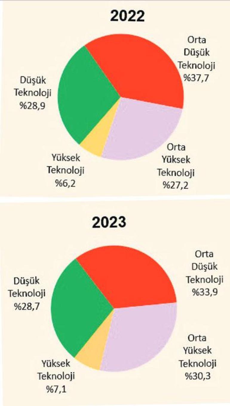 “Sanayimizin düşük, orta ve yüksek teknoloji ile bağını en somut şekilde ortaya koyan bu verilerde son yıllarda genellikle durağan, değişmeyen bir seyir vardı. Fakat bu yıl sanayimizin orta-yüksek ve yüksek teknolojiye doğru olumlu bir kırılma yaşandığını görüyoruz. 2022 yılına göre 2023 yılında, yüksek ve orta-yüksek teknoloji yoğunluklu sektörlerin yaratılan toplam katma değer içindeki payını 4 puan artırması sanayimizin teknolojik dönüşümü adına umut vericidir.”