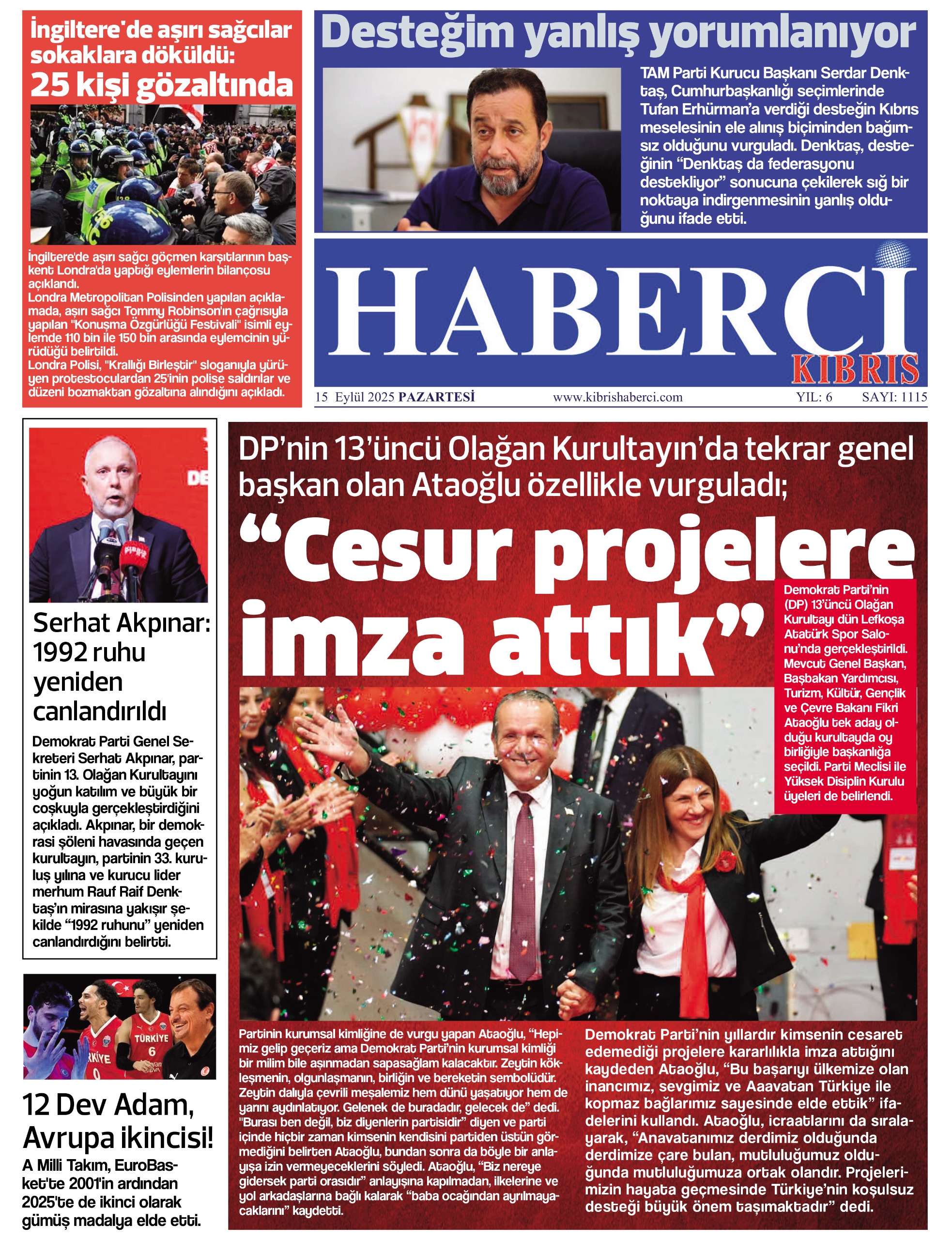15 EYLÜL PAZARTESİ”’GAZETE MANŞETİMİZ