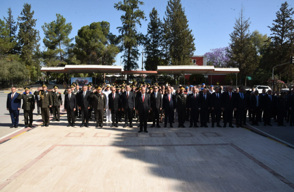 Lefkoşa okullarından öğrencilerin flama ve bayrak taşıyarak hazır bulunduğu tören, protokol sırasına göre çelenklerin anıta sunulması ile başladı ve saygı duruşu, ardından İstiklal Marşı eşliğinde bayrakların göndere çekilmesi ile devam etti.