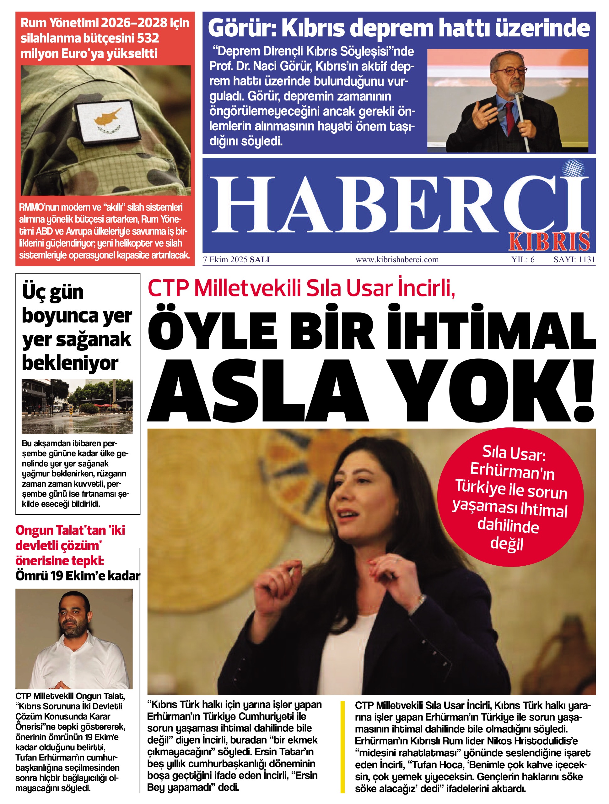 7 EKİM SALI-GAZETE MANŞETİMİZ