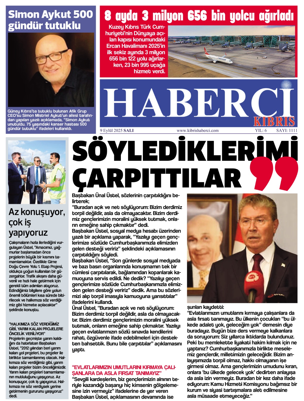 3. 9 EYLÜL SALI… GAZETE MANŞETİMİZ