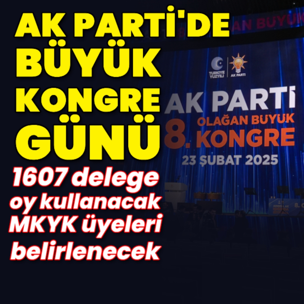 AK Parti 8. Olağan Büyük Kongresi bugün düzenleniyor. Kongrede 1607 delege oy kullanacak. Öte yandan kongrede Merkez Karar ve Yönetim Kurulu (MKYK) üyeleri belli oldu