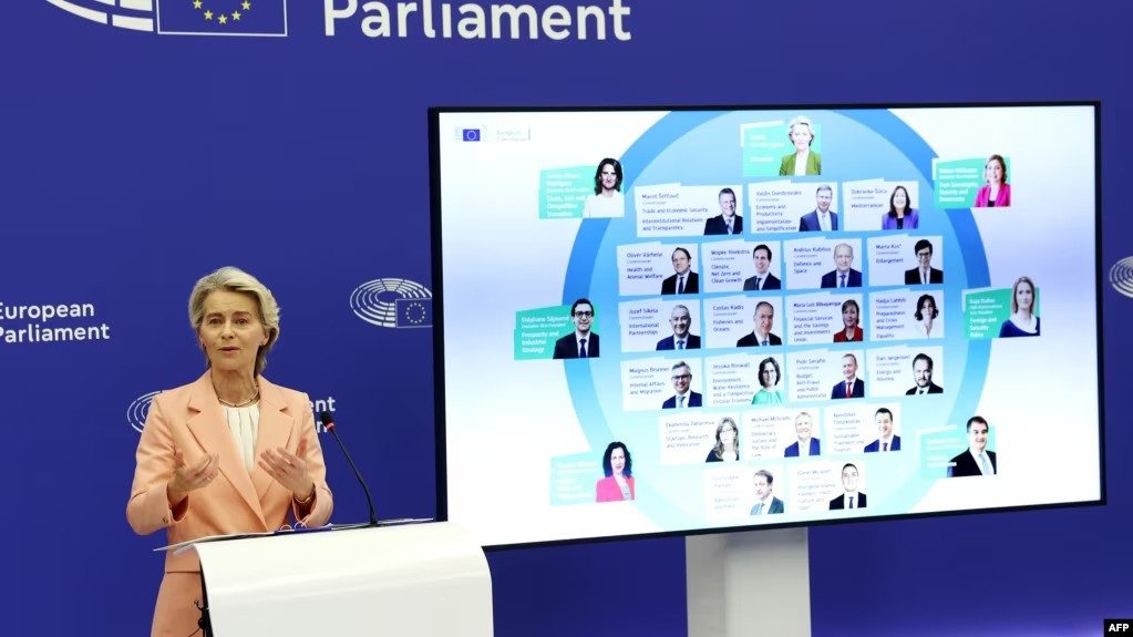 Ayrıca Slovenya’dan Marta Kos “Genişleme”, Slovakya’dan Maros Sefkovic “Ticaret ve Ekonomik Güvenlik”, Letonya’dan Valdis Dombrovskis “Ekonomi ve Üretkenlik”, Hırvatistan’dan Dubravka Suica “Akdeniz”, Macaristan’dan Oliver Varhelyi “Sağlık ve Hayvan Refahı”, Hollanda’dan Wopke Hoekstra “İklim, Net Sıfır ve Temiz Büyüme”, Litvanya’dan Adrius Kubilius “Savunma ve Uzay”, Çekya’dan Jozef Sikela “Uluslararası Ortaklıklar”, Güney Kıbrıs Rum Yönetiminden (GKRY) Costas Kadis “Balıkçılık ve Okyanuslar”, Portekiz’den Maria Luis Albuquerque “Finansal Hizmetler, Tasarruflar ve Yatırımlar”, Belçika’dan Hadja Lahbib, “Hazırlıklılık, Kriz Yönetimi ve Eşitlik”, Avusturya’dan Magnus Brunner, “İç İlişkiler ve Göç”, İsveç’ten Jessika Roswall, “Çevre, Su Dayanıklılığı, Rekabetçi, Döngüsel Ekonomi”, Polonya’dan Piotr Serafin “Bütçe, Yolsuzlukla Mücadele ve Kamu Yönetimi”, Danimarka’dan Dan Jorgensen “Enerji ve Konut”, Bulgaristan’dan Ekaterina Zaharieva “Startup, Araştırma ve İnovasyon”, İrlanda’dan Michael McGrath, “Demokrasi, Adalet ve Hukukun Üstünlüğü”, Yunanistan’dan Apostolos Tzitzikostas, “Sürdürülebilir Ulaşım ve Turizm”, Lüksemburg’dan Christophe Hansen “Tarım ve Gıda”, Malta’dan Glenn Micallef “Nesiller Arası Adalet, Gençlik, Kültür ve Spor” dosyalarını aldı.