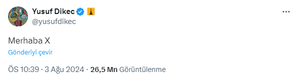 Olimpiyat madalyası getiren atışı sırasında tüm dünyanın ilgisini çeken ve birçok ünlü ismin paylaşım yaptığı Yusuf Dikeç’in yeni açtığı sosyal medya platformu X’teki hesabı büyük ilgi gördü. Hesabını açtıktan 3 gün sonra 200 bin takipçiyi geçen Yusuf Dikeç’in ilk paylaşımı “Merhaba X” mesajını, 26 milyon kullanıcı görüntüledi.