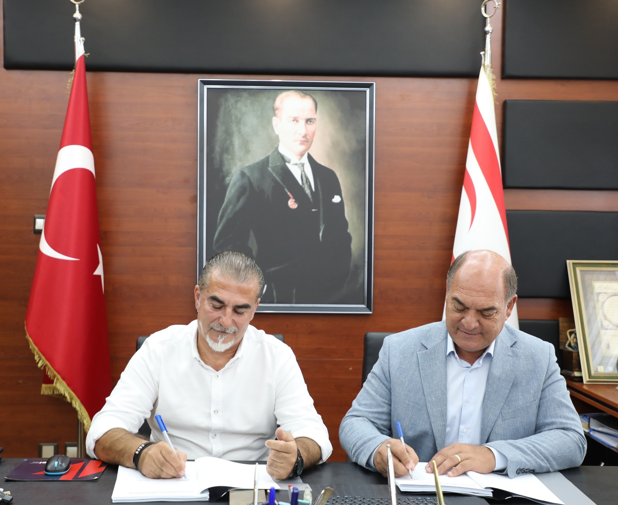 Değirmenlik Akıncılar Belediye Başkanı Ali Karavezirler ile yüklenici firma Elnaz Trading Ltd. Direktörü Hasan Paralik bugün imzaları atarak proje için startı verdi.