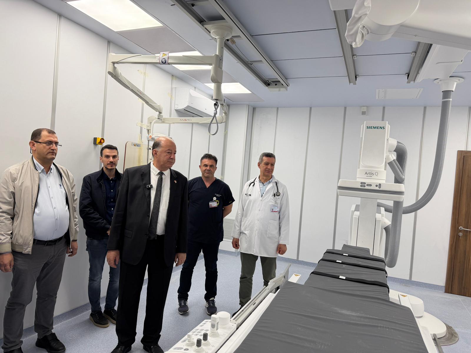Sağlık Bakanı Dr. Hakan Dinçyürek, Gazimağusa Devlet Hastanesi’ni ziyaret ederek kısa süre önce kurulan anjiyo merkezinde incelemelerde bulundu. Yaklaşık 1-2 hafta öncesine kadar inşaat halinde olan alanın hızla tamamlanarak anjiyo ünitesinin kurulduğunu ve çalışır hale getirildiğini belirten Dinçyürek, dün itibariyle birinci kademe eğitim çalışmalarının da tamamlandığını açıkladı.