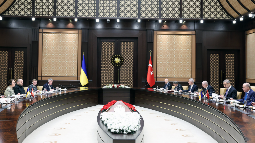 Türkiye Cumhurbaşkanı Recep Tayyip Erdoğan, Ukrayna Devlet Başkanı Volodimir Zelenskiy ile heyetler arası görüşmeye başkanlık etti.