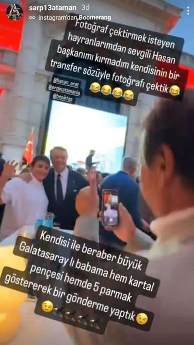 Sarp Ataman sosyal medya hesabından, Beşiktaş Başkanı Hasan Arat ile verdiği bir pozu yayınladı. Sarp Ataman paylaşımda şu ifadeleri kullandı:
