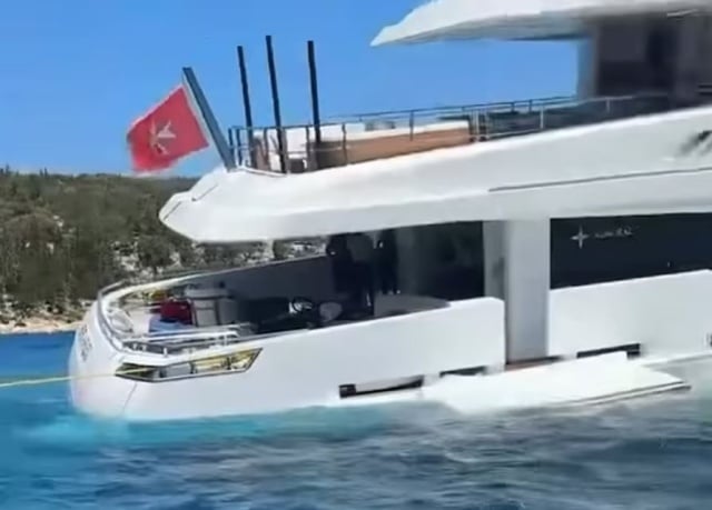 Haftalık 180.000 Sterlin’e kiralanan 46 metrelik ‘Ethos’ yatı, Kefalonia kıyılarında su alırken görüntülendi. Nedenin, mürettebatın açık bıraktığı bir kapı olduğu bildirildi.