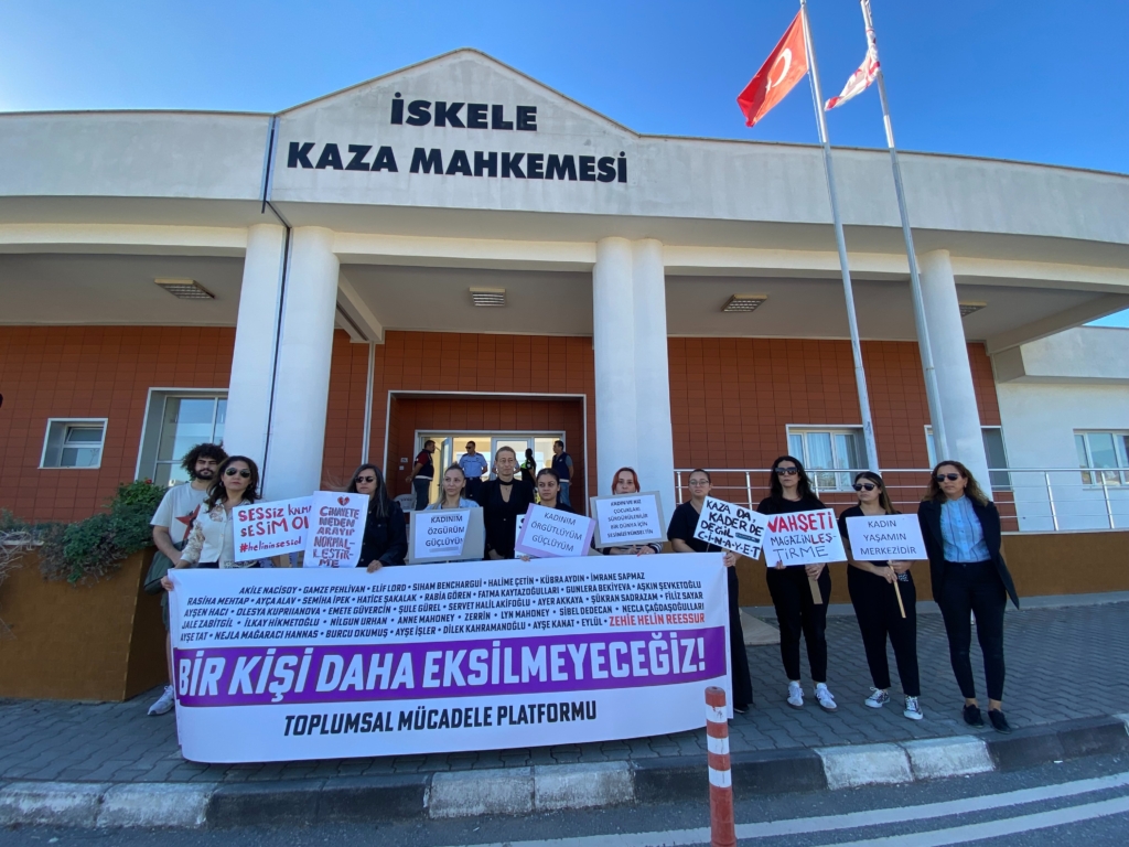 İskele Kaza Mahkemesi’nde okunacak karar öncesi bazı sivil toplum örgütleri mahkeme önünde eylem yaptı.