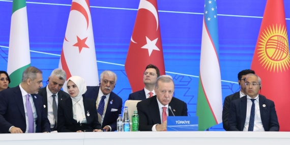 “Uluslararası Barış ve Güven Forumu” için Türkmenistan’ın başkenti Aşkabat’ta bulunan Türkiye Cumhurbaşkanı Recep Tayyip Erdoğan, Rusya...