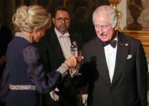 Charles ve eşi Camilla onuruna verilen; oyuncu Hugh Grant, futbol menajeri Arsene Wenger ve Rolling Stone grubu solisti Mick Jagger’ın da aralarında bulunduğu yıldızlarla dolu ziyafette Emmanuel Macron, hiçbir şeyi eksik etmedi. Mavi ıstakoz ve yengeçten oluşan bir menünün ardından misafirlere Bresse tavuğu ve mantarlı gratin ikram edildi.