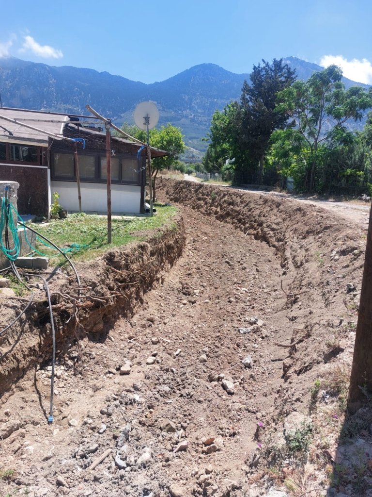 Vatandaşların yaşadığı mağduriyeti gidermek adına Başkan Ataser ‘Lapta, Alsancak ve Karşıyaka bölgesinde su taşkınları konusunda yaptığımız çalışmalarda derelerin yönlerinin değiştiği ve akarların devamının olmadığı veya kapatıldığı, suyun gidecek yerinin kalmadığı, yok olduğunu tesbit edilmesinin ardından, hizmet satın aldığımız ve kendi imkânlarımızla dereler ve su akarlarının denize doğru ulaşılması için temizlik çalışmaları yapılırken bir yanda da kutu menfez yapılmaktadır.