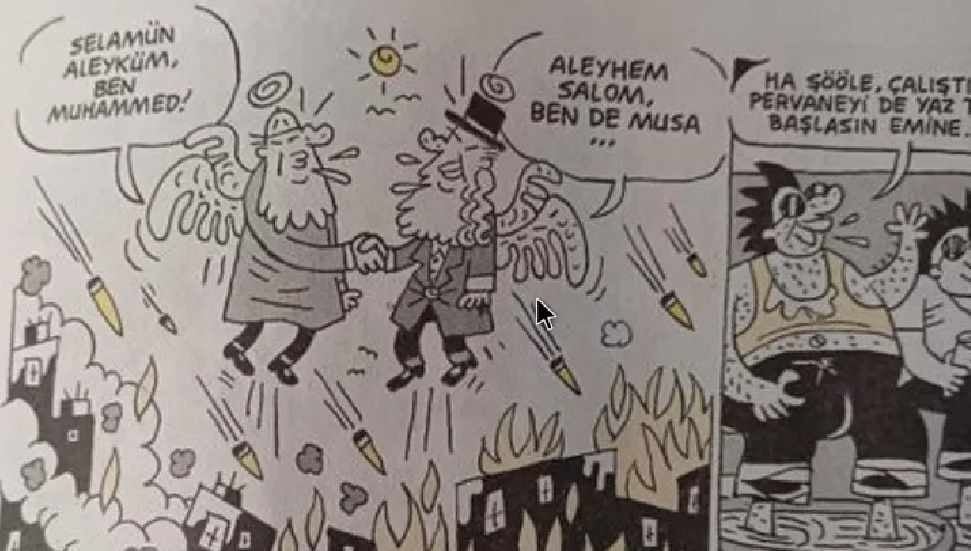 “Burada karikatürün çizeri İsrail tarafından öldürülen bir Müslüman’ı konu ederek mazlum Müslüman halkın haklılığını çizmek istemiş olup dini değerleri aşağılama amacı asla bulunmamaktadır. Bize sürülen lekeyi kabul etmiyoruz zira Peygamber Efendimizin tasviri yoktur. Karikatürü böyle yorumlamak için çok kötü niyetli olmak lazım.”