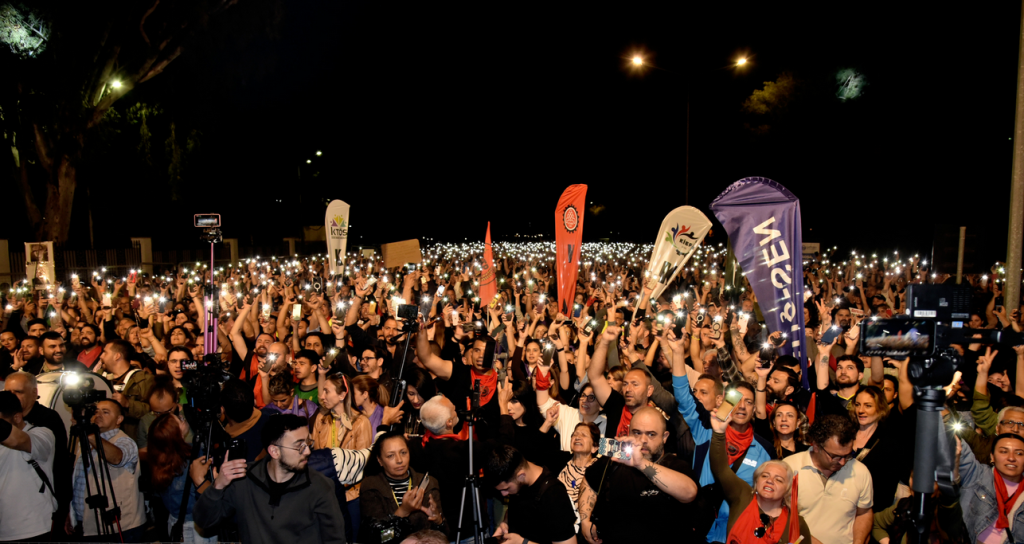 “Kimliğimize, kültürümüze sahip çıkmaya ve bu ülkenin değerlerine müdahale edenlere dur demeye geldik. Meydanlardayız; çünkü asgari ücretli açlığa mahkum eden emek düşmanlarına ‘dur’ demeye geldik.” ifadelerine yer verdi.