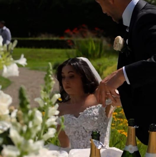 Babasının evinden davul ve zurna eşliğinde çıkan Karsu, eşiyle klasik bir araca binerek düğün mekanına gitmeye çalıştı ancak çiftin aracı yolda bozuldu. O anları gülerek karşılayan ikili, araç tamir edilince yoluna devam etti. Çiçeklerle dolu bir bahçede evlenen Karsu, sevenleriyle eğlenirken içki şişesi açmak istedi ancak gelinliğin azizliğine uğrayarak yere düştü. Eşinin yardımıyla gülerek yerinden kalkan Karsu, iyi olduğunu söyleyerek eğlenceye devam etti. Karsu düştüğü anları da nazar boncuğu emojisiyle Instagram hesabından yayınladı.