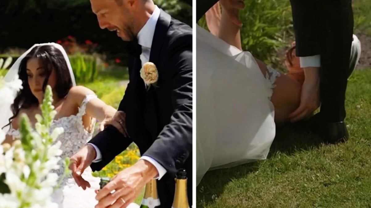 Talihsiz anlar! Gelinliğinin azizliğine uğrayan Karsu düğününde düştü